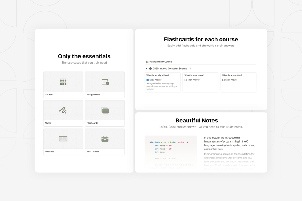 Manage Courses, Track Assignments, Capture Notes, Use Flashcards, Manage Finances, and Track Job Applications - all in one place!